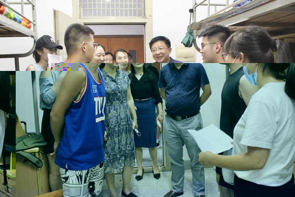 會議之後,馮春芳、朱廣東和高娟帶領班主任走訪學生宿舍,看望疫情返校後的學生,就學生适應問題、生活和學習狀态進行關心和指導。