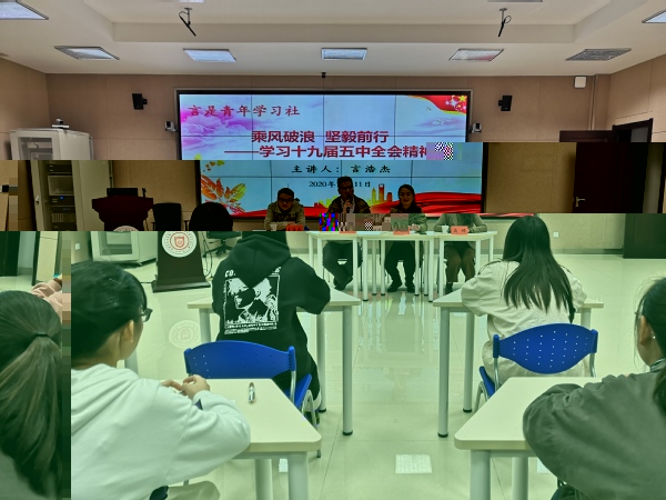 緊扣時代脈搏、緊跟黨的步伐,一直是言是青年學習社的宗旨和追求。學習社将把全會精神的學習轉化為引導我校青年建功新時代的強大動力,推動十九屆五中全會精神在青年學生中落地生根、落實見效。今後,言是青年學習社将繼續創新活動形式,豐富活動内容,搭建好用黨的科學理論引領青年、組織青年、服務青年的有效平台。