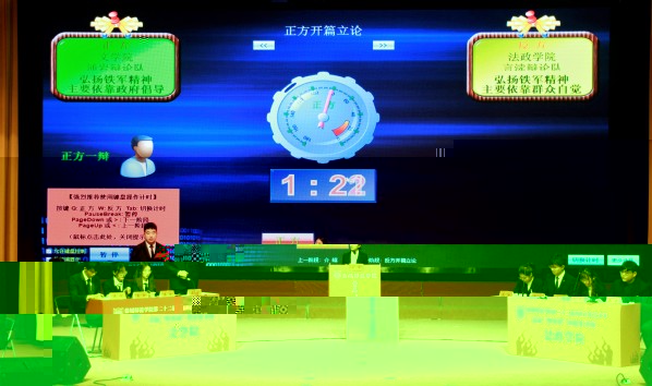 比賽開始前,一則宣講鐵軍精神的暖場視頻讓在場觀衆傾聽曆史回響,堅定前行方向。辯論賽共設置立論陳詞、攻辯階段、攻辯小結、自由辯論和總結陳詞五個環節。比賽正式開始,雙方就“弘揚鐵軍精神,主要依靠政府倡導還是群衆自覺”這一辯題展開激烈的辯論。辯論場上你來我往、旁征博引,隊員們據理力争,妙語連珠,一展時代青年的精神風貌。在理性與邏輯火花的碰撞中,智慧被點亮。直至辯論結束,仍是意猶未盡。期間觀衆互動、節目表演等環節為大賽營造了良好氛圍。
