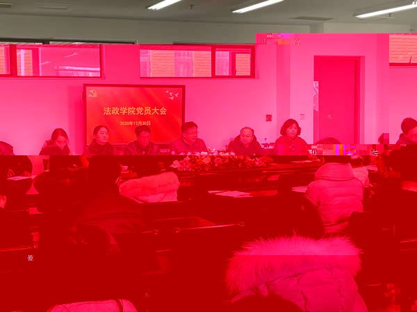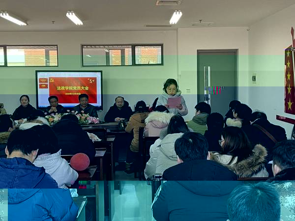 12月30日下午,法政學院黨員大會在綜合樓A209隆重召開。校黨委基層組織換屆工作督導組組長、原财務處處長錢明忠,辦公室綜合科吳志成,法政學院全體教職工黨員和學生黨員參加會議。學院黨委副書記、院長朱廣東主持會議。