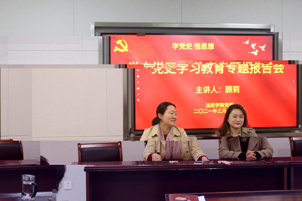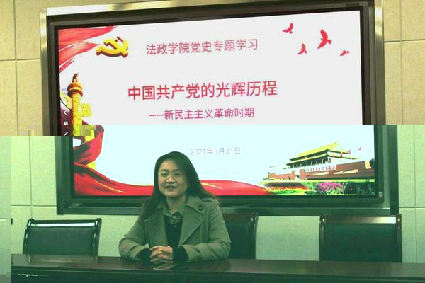 為深入學習貫徹習近平總書記在黨史學習教育動員大會上的重要講話,法政學院推出“學黨史 悟思想”黨史學習教育系列活動。3月31日下午,法政學院舉辦黨史學習教育專題講座第一講,法政學院思想政治教育系主任顧莉老師作專題輔導。法政學院黨委領導班子出席會議,學院全體教職工參加會議,本次報告會由學院黨委書記馮春芳主持。