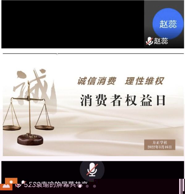 2022年3月15日是第40個國際消費者權益日,根據疫情防控工作需要,為減少人員聚集,法政學院方正學社線上線下結合開展了“3•15”消費者權益保護宣傳活動,以此增強消費者維權意識、提高保護意識,營造放心安全消費的良好社會氛圍。