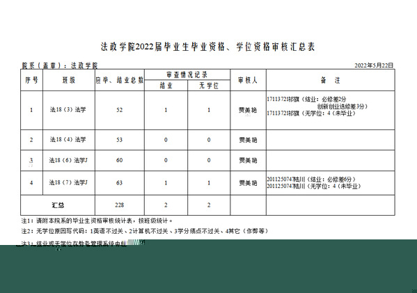 法政學院關于2022屆畢業審核及學位審核結果的公示