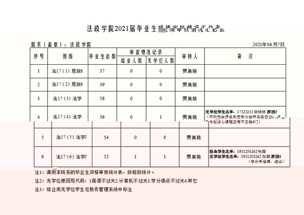 法政學院 關于2021屆畢業審核及學位審核結果的公示