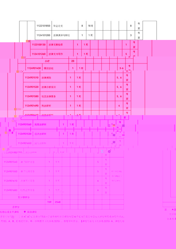 專業代碼 030101K 授予學位 法學學士