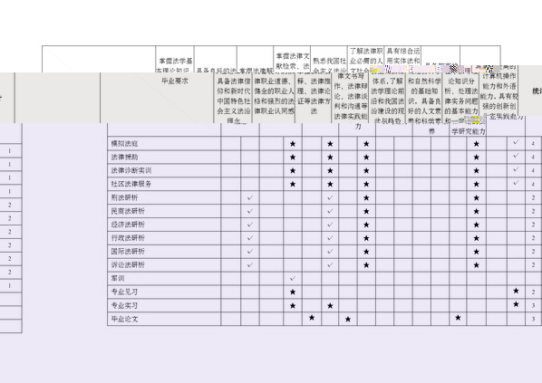 1.掌握法學基本理論知識,具備法律信仰和新時代中國特色社會主義法治理念;