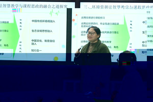 青年教師授課展示環節,由本屆中青年教師會講比賽參賽者谷海霞和趙桂玉老師進行微授課。與會教師圍繞授課内容及形式紛紛展開讨論。國際法教研室主任任憲龍老師從法律問題的介入方式及專業性的呈現方面發表個人觀點。上屆會講比賽二等獎獲得者葛偉老師從個人參賽經驗角度,對說課的形式及内容提出改進建議。其他與會教師也分别從内容設計、能力培養、價值觀塑造等方面提出有建設性的意見和建議。
