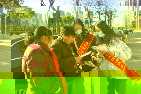 “阿姨,如果您平時接到陌生電話要求彙款的一定不要相信,要保護好自己的财産安全。”“爺爺,您看我們宣傳冊上的這個案例,如果您平常遇到同樣的情況,您可以積極地尋求法律幫助”。大學生法治宣講團志願者們組成6個普法小分隊到周邊小區、沿街商鋪、菜市場等地,通過懸挂橫幅、發放宣傳單、口頭宣講等方式,向社區居民宣傳電信網絡詐騙、消防安全等與居民生活息息相關的法律知識。