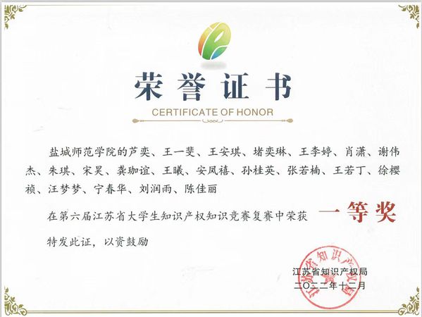 喜報!法政學院代表我校再獲江蘇省大學生知識産權知識競賽第一名!