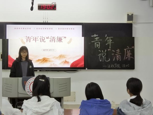 話廉潔故事,頌清廉精神。舉辦青年說“清廉”主題宣講,通過演講、答題等形式,傳播廉潔之風。開展青年說“清廉”知識競答,通過“線上+線下”答題比賽的形式,營造了“以賽促學、以學敦行”的良好氛圍,真正把廉潔教育要求浸潤到學子心中。