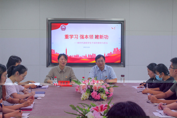 王廣飛作題為《重學習 強本領 建新功——新時代高校學生幹部的使命與擔當》專題報告。他與同學們分享了自己作為學生幹部經曆和工作經曆,明确學生幹部的工作職責,勉勵同學們發揮模範作用,服務學生的健康成長和學院的高質量發展。他從“重學習、強本領、建新功”三個方面進行詳細的培訓。