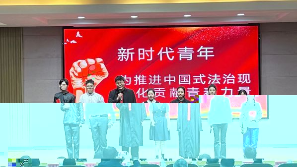 11月29日,法政學院大學生法治宣講團參加鹽城市“青講青聽”大學生巡回理論宣講活動,他們以《以青春之我,耀法治之光》為題,用生動的語言和身邊的事例講述,向大家介紹了憲法的基本内容、地位和修改曆程,弘揚憲法精神,傳播法治理念,精彩的彙報演出獲得一緻好評,展現出新時代法科學子的使命與擔當。