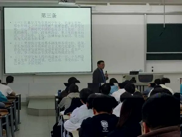 程宏如教授以“黨員的權利和義務”為重點向入黨積極分子們講解了黨章黨規的内容,強調大家要正确處理好權利與義務的關系。在講到黨員義務方面的内容時,程教授歸納了三個入黨要求:身份條件、政治态度以及組織觀念;黨員必備三性:先進性、利民性、群衆性。此外,程教授通過紅旗渠精神和常德盛先進事迹的案例,鼓勵新時代青年應做到“勤學、修德、明辨、笃實”。