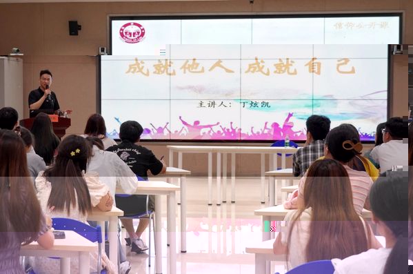 丁炫凱以“成就他人,成就自己”為主題作專題講座,他圍繞“你想成為什麼樣的人?你可以做什麼?你願意為别人做什麼?你肯定可以成就自己!”四個方面展開分享。通過講述與往屆學生幹部相處的事例和自身工作經驗,幫助同學們進一步明确工作目的和方向,指出學生幹部要有擔當、有責任心,在工作中善于思考、勇于創新,增強學習的主動性,把實踐鍛煉作為提升自己的重要平台和機會,充分利用寶貴的青春年華,把青春奉獻在為同學服務之中。