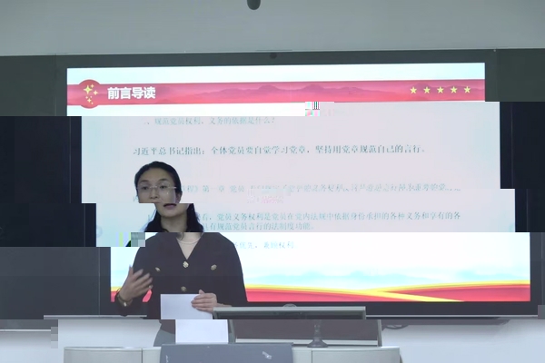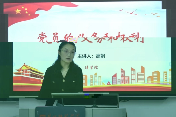 本次黨課的主題是“中國共産黨黨員的權利和義務”。高娟首先指出依黨章履行義務、行使權利的重要性。其次,她将中國共産黨黨章的發展分為四個階段,詳細地講述了黨員的權利義務發展和完善的過程。随後,她講解了黨員的八項義務和八項權利,以及如何正确履行義務、行使權利。最後,她希望入黨積極分子們要履行好黨的義務,行使好黨賦予的權利,不斷加強自身修養,提高政治覺悟,努力踐行黨的宗旨,為實現中華民族偉大複興的中國夢貢獻自己的力量。