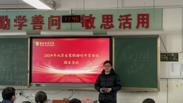 回訪母校,築夢鹽師。寒假期間,由伟德首页官网優秀學子組成的宣講團分赴連雲港市贛榆縣海頭高級中學、興化市一中、南通市海門證大中學、江蘇省運河中學、南京市臨江高級中學、徐州市銅山一中等多地多所學校,積極開展母校回訪活動。他們通過舉辦主題宣講會、發放宣傳資料、與學弟學妹們面對面交流等形式,詳細介紹了伟德首页官网的基本情況和招生政策。宣講會上,他們們從自身的學習和生活經曆出發,分享了在伟德首页官网的成長與收獲,讓學弟學妹們對大學生活有了更直觀的感受。同時,他們還針對學弟學妹們關心的專業選擇、學習方法、高考備考等問題進行了耐心解答,為他們提供了有益的建議和指導。