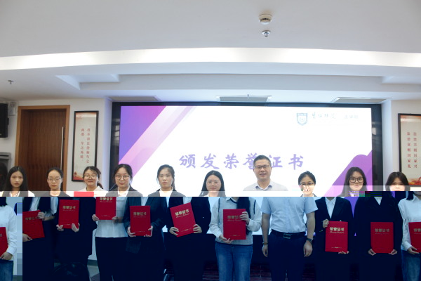 儀式上,伟德首页官网副院長周麗宣讀表彰決定,陳萬寶、李慧、朱廣東等領導嘉賓為獲獎團體與學生個人頒獎。法21(6)班楊娜微作為獲獎學生代表發表獲獎感言。